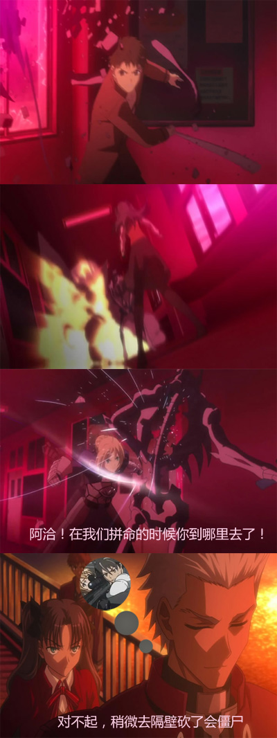 晚上留下来,跟黑黑在反省会啃着宵夜一起看掉了剧场版 Fate/stay night UNLIMITED BLADE WORKS
